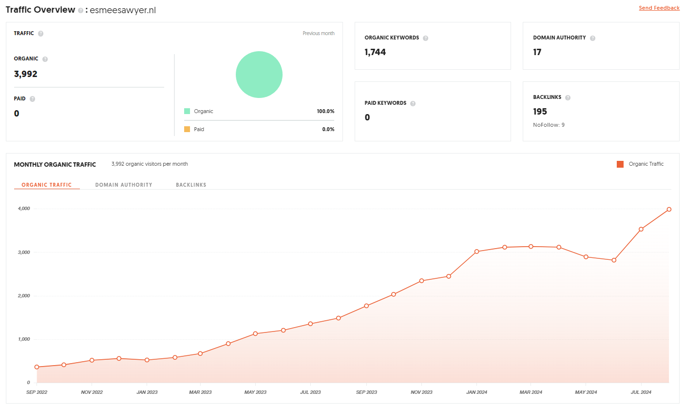 Esmee´s venture into digital marketing has expanded her business's reach and fortified her reputation beyond her local fame. Interested in exploring what digital marketing can do for your business? Start with our free trial today to receive personalized keyword recommendations, a tailored strategy for your site, and a custom-crafted article from our content team.